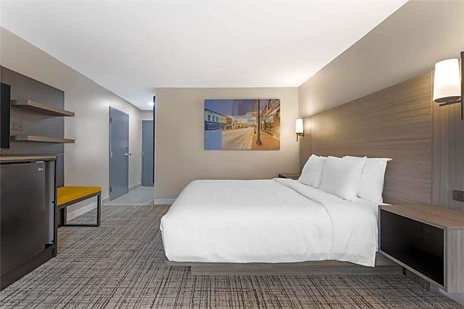 Our One-Bedroom King Suite is a spacious 420 sqft suite, perfect for families with 3 adults and 2 children. Unwind in the comfort of a king size bed or the convenience of a sofa bed, while enjoying amenities like free Wifi, a flat-screen TV, and a tea/coffee maker.
